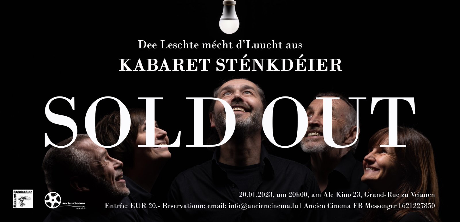 Entry: 20 EUR, Reservatioun: email: info@anciencinema.lu, message: Ancien Cinema FB Messanger, SMS 621227850
