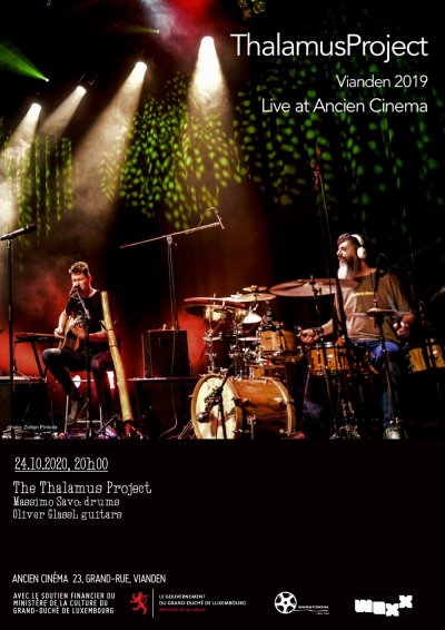 The Thalamus Project was founded in 1995 to produce music for theatre plays, movies, exhibitions and performances. For each of the projects, new material was developed and performed by individually composed lineups. The current program consists of songs, written in the last 20 years and now arranged for guitar, drums, didgeridoo and a loop machine. It is put on stage my Massimo SAVO (IT) and Oliver GLASSL (DE). The ThalamusProject will also present songs from their latest live-EP ThalamusProject, Vianden 2019, Live at Ancien Cinema which was recorded on our stage in January 2019.
